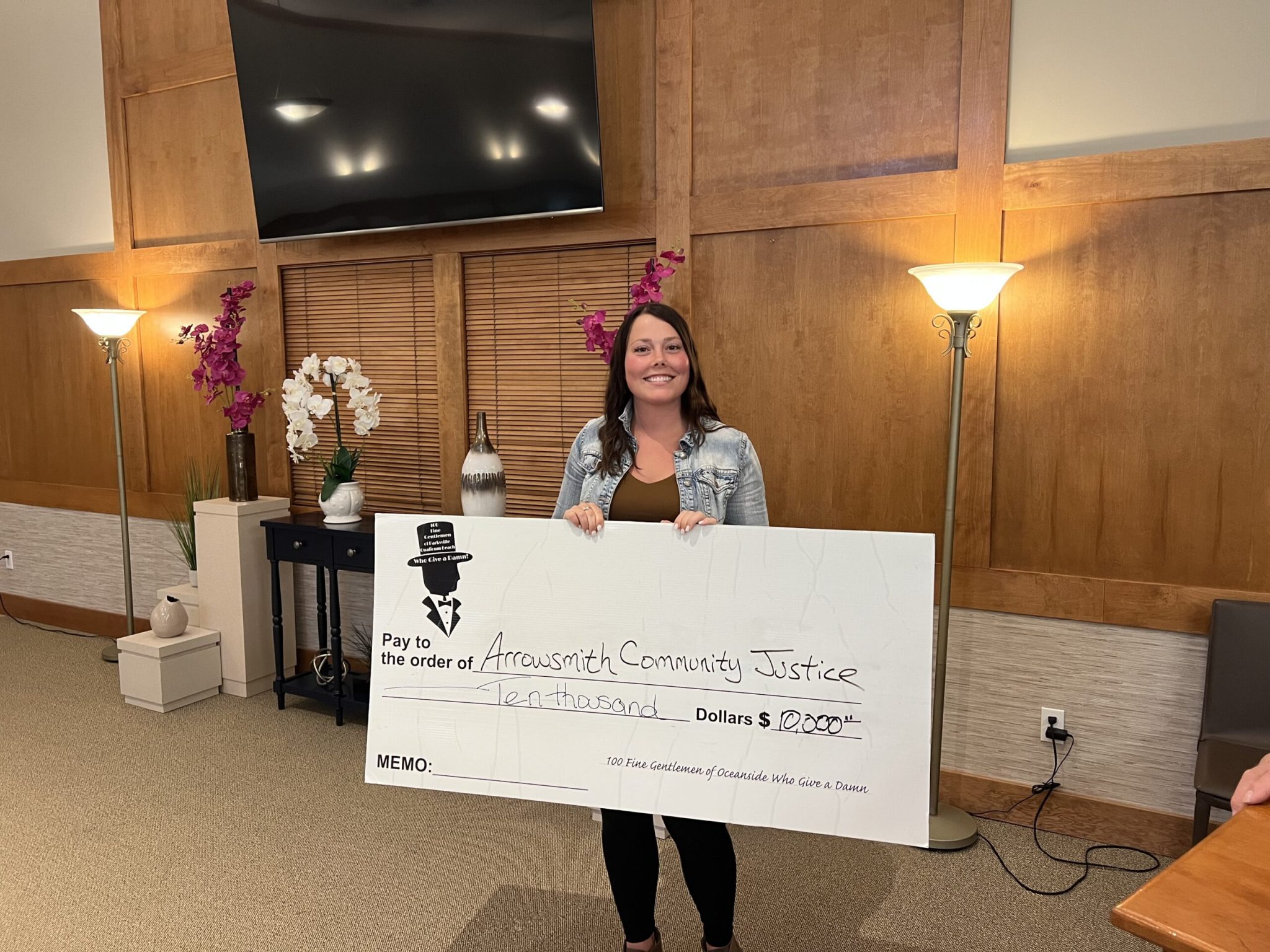The Fine Gentlemen gathered at Yates Funeral Services to select Arrowsmith Community Justice Society as the recipient of $10,300.00. The meeting began with the social “Guy Time” which is gaining popularity.